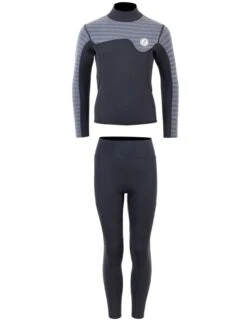 Two Bare Feet Junior Aspect 2.5mm Back Zip Jacket & Pants Set (Black/Grey Stripes)