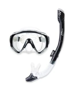 Explore underwater in style with the DiveSport Mask and Snorkel set, featuring soft edge double feathered silicone mask skirt and robust frame construction.
