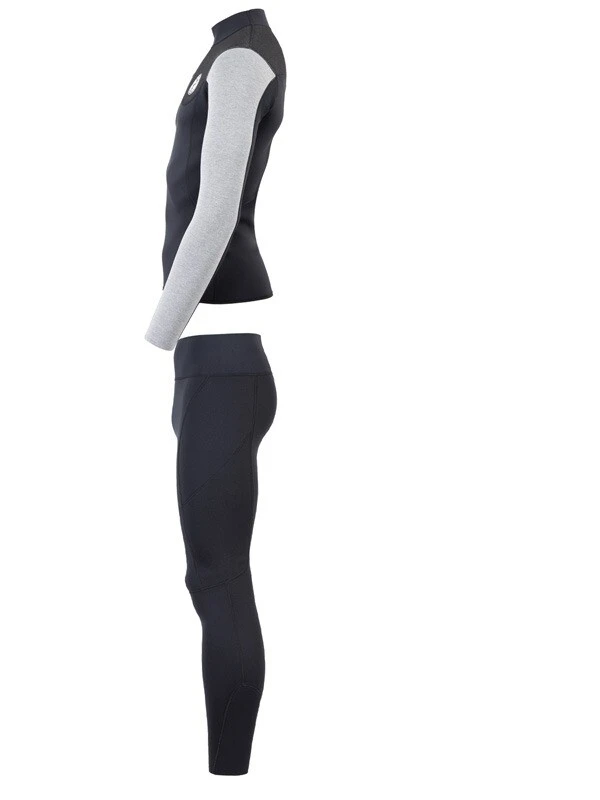 Two Bare Feet Mens Aspect Fleece Lined Zipless Thermal 2.5mm Superstretch Wetsuit Top & Pants Set (Black/Grey/Grey)