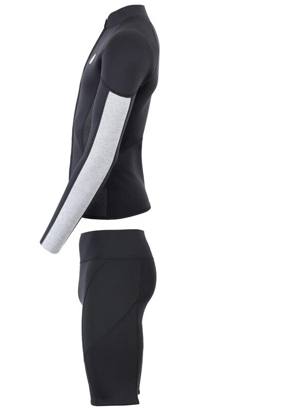 The jacket is then paired with our Vista 2.5mm wetsuit pants with a high waistband featuring CR Superstretch neoprene for maximum comfort around the waist. The legs of the shorts use 2.5mm double nylon for warmth and a tight fit. Both the jacket and shorts also feature flatlock seams to eliminate any rubbing.
