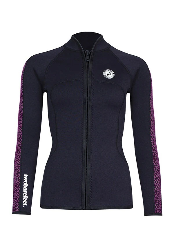 Two Bare Feet Womens Silicone Print Series 2.5mm Wetsuit Jacket & Shorts Set (Black/Raspberry)