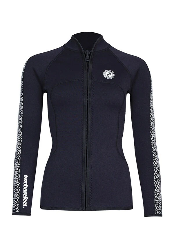 As part of the Two Bare Feet Silicone print series, this Womens neoprene jacket is extremely versatile, lightweight and soft to the touch. Featuring a full-length front zip and boasts a stylish silicone pattern. This Wetsuit Jacket offers the benefits of warmth and flexibility without the discomfort of a full wetsuit.