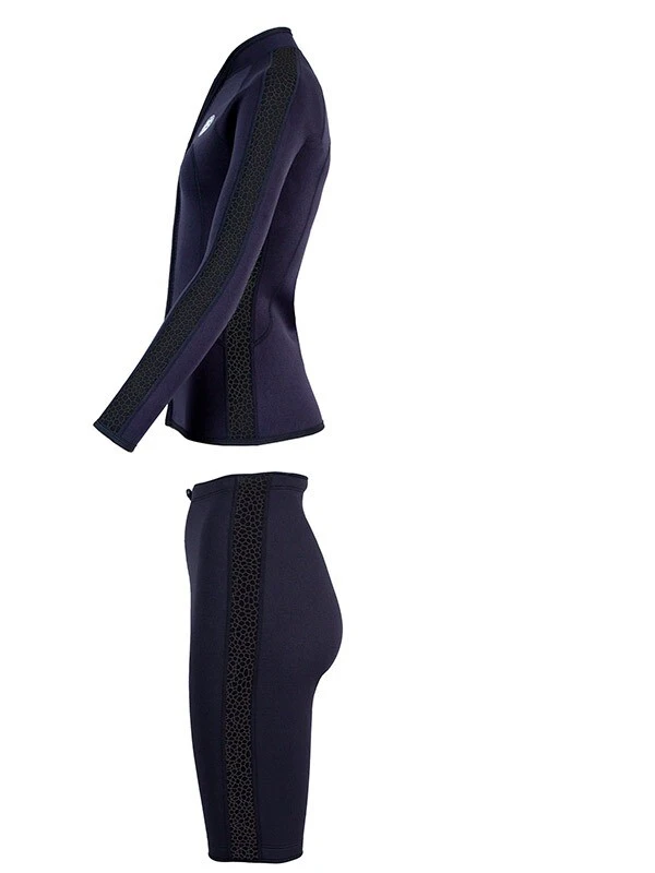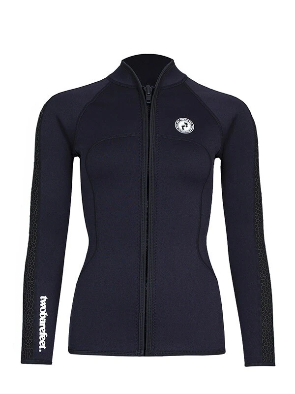 As part of the Two Bare Feet Silicone print series, this Womens neoprene jacket is extremely versatile, lightweight and soft to the touch. Featuring a full-length front zip and boasts a stylish silicone pattern. This Wetsuit Jacket offers the benefits of warmth and flexibility without the discomfort of a full wetsuit.